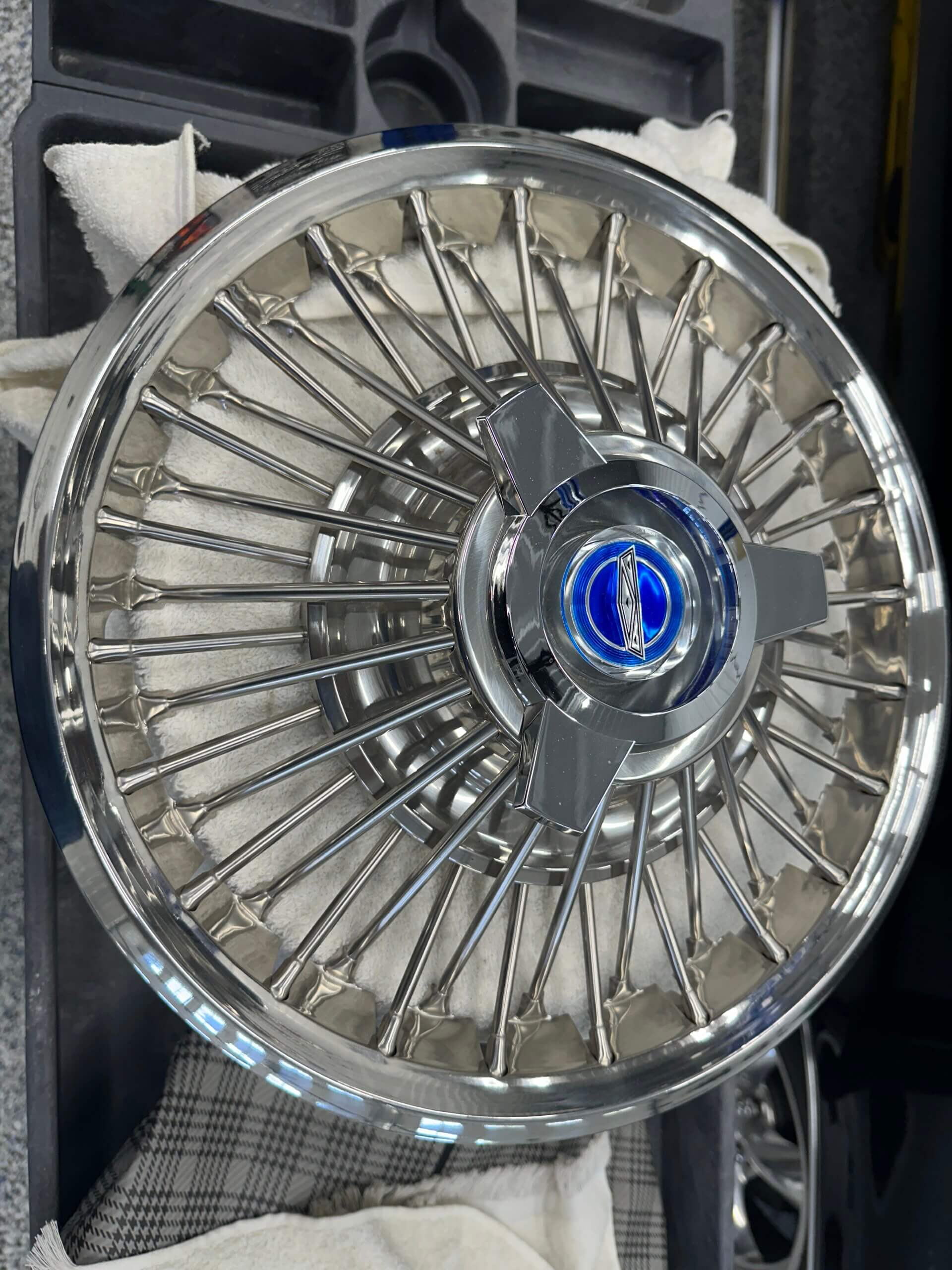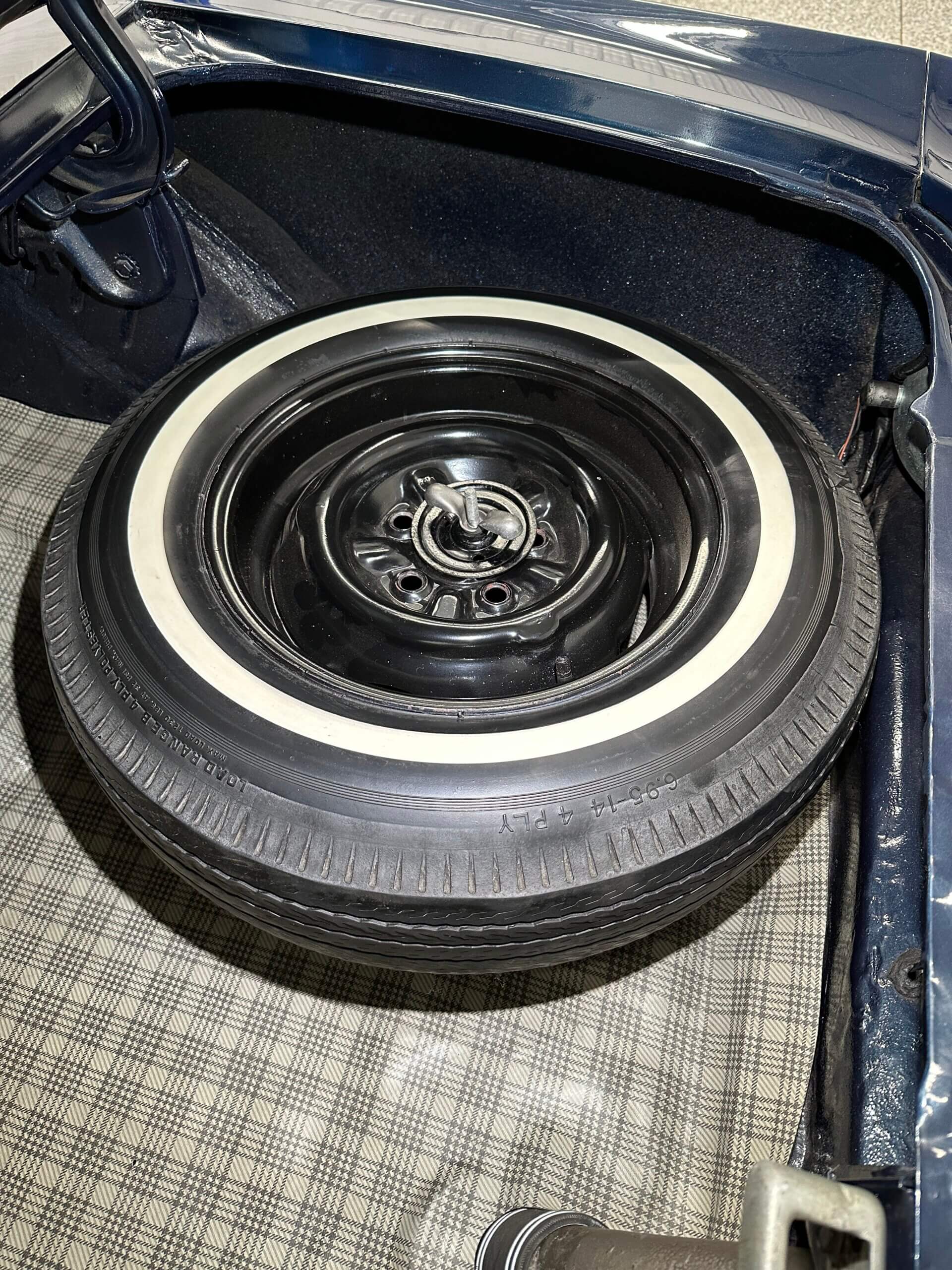 Included are five (5) 1966 Ford Mustang Wire Spoke Spinner hubcaps / wheel covers in new, show-only condition. The owners always drove on a separate set of “travel” covers and installed the Wire Spoke covers only for shows—so the show set remains pristine. Tires are proper-type Coker U.S. Royal 6.95×14 whitewalls.